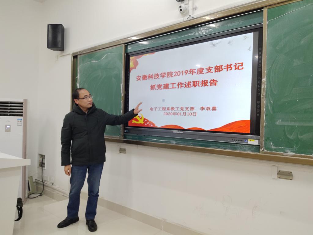 1月10日下午,电气与电子工程学院党总支在致知楼B201召开2019年度党支部书记述职评议会。学院党总支书记张盛,党总支副书记尚磊,各党支部书记和师生党员代表参会。会议由张盛主持。