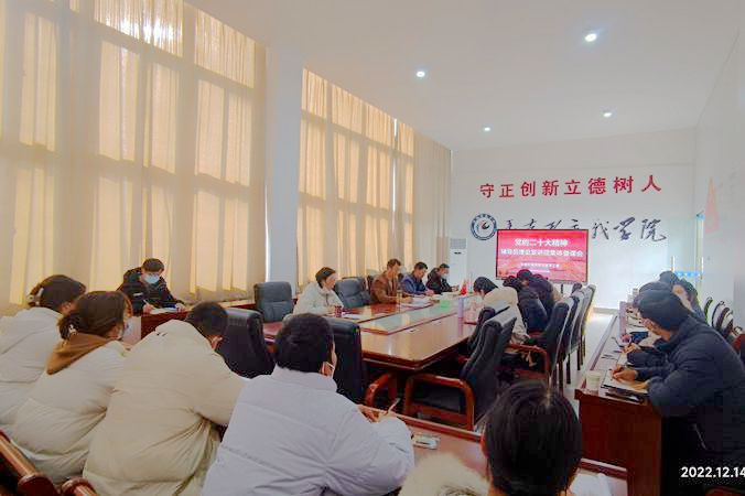 为进一步做好党的二十大精神辅导员理论宣讲工作,12月14日下午,我校党委学工部(学生处)在凤阳校区图书馆B二楼马克思主义学院会议室组织召开党的二十大精神辅导员理论宣讲团集体备课会。党委学工部部长、学生处处长黄立义出席并讲话,马克思主义学院院长张德化应邀做专题培训,党委学工部副部长、学生处副处长陈君君、胡文靖,辅导员理论宣讲团成员参加集体备课会。会议由陈君君主持。