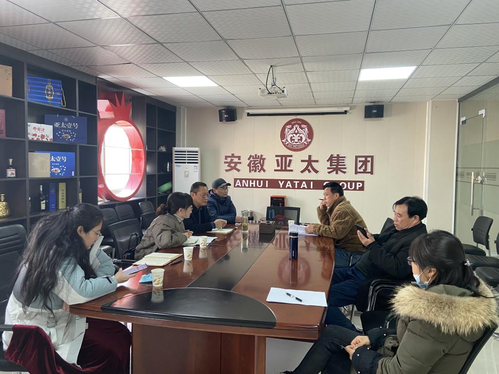 2月1日,由食品工程学院院长杜传来带队,食品工程学院副教授杨剑婷、食品分析检测中心副主任于鲲、农学院副教授胡友军、科研处科研科科长钱晶晶一行赴怀远亚太石榴酒有限公司和五河县浍南镇进行产学研对接调研。上午,杜传来一行首先来到怀远县亚太石榴酒有限公司,就校企双方共同承担的2021年安徽省中央引导地方科技发展专项资金项目“石榴副产物高值化产品开发关键技术及产业化示范”进展情况进行了座谈交流,总结梳理了前期的研究成果,进一步明确了下一阶段项目研究的目标与任务,并就石榴产业化综合开发及未来发展方向进行了研讨。座谈会后,亚太石榴酒有限公司董事长余泽尧亲自带领调研组一行,参观了石榴文化博物馆及新厂生产线,参观交流中双方还就企业的近远期发展规划和下一步的深度合作进行了充分的交流沟通,并就2023年双方合作开展的主要工作达成了一致共识。