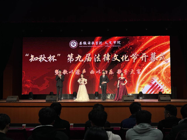 为积极响应加强法治宣传教育的号召,进一步丰富校园文化生活,展示大学生青春风采,3月16日晚,人文学院在大学生活动中心隆重举办“知秋杯”第九届法律文化节开幕式暨“歌以潆声,曲以徊乐”歌手大赛。安徽知秋律师事务所主任、首席合伙人宫鉴,执行主任、高级合伙人耿晓兵,房地产与建设工程团队负责人、高级合伙人王欣,学校党委(校长、法治)办公室副主任李吉庆,人文学院党政领导、法学系教师及全体辅导员出席。
