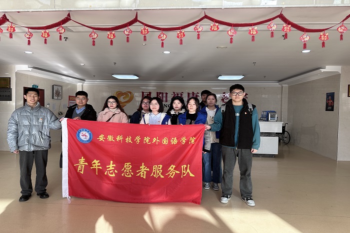 为弘扬敬老爱老的传统美德和志愿服务精神,展现新时代大学生的青春风采,3月22日下午,外国语学院文艺大风车艺术团在学院团委副书记宋兵兵带领下赴凤阳县福康养老院开展“关爱老人 温情相伴”活动,来自翻译专业学生党支部和英语学生党支部的党员和外国语学院艺术团55名学生参加。文艺汇演在养老院一楼大厅举行,凤阳县楼南社区党总支书记马长顺、团支部书记王丹丹以及养老院约120余人共同观看演出,文艺汇演由学院主持队队长任星月主持。