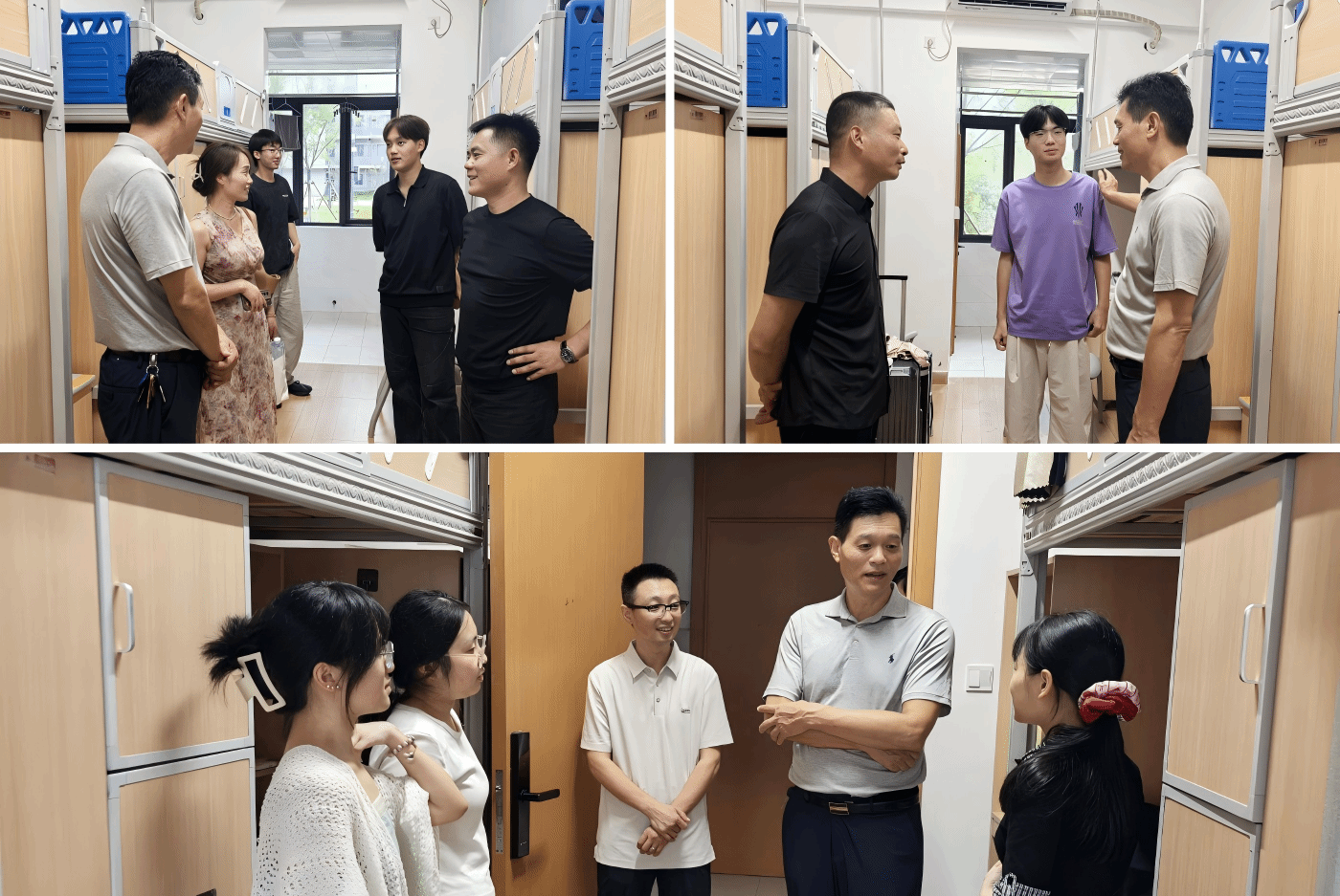 上午十一点,学院在101学术报告厅召开了新生家长见面会并现场邀请家长进入了学院2025级家校共建群。学院党委书记付光玺致辞,他介绍了学院学生培养的理念及成效,也希望各位家长能够多多支持和理解学院工作,共同为孩子成长成才提供支撑。院长杜传来介绍了学院整体情况。副院长翟立公介绍了学院教学科研等方面的情况。家长会后,有家长表示:“孩子送到安科是正确的,今天过去看到后非常放心,学校的领导和老师们非常用心和负责任!”下午四时许,学院领导一一走访了新生宿舍,学院领导与新生亲切交谈,为同学们顺利开启大学时光增强了信心和动力。
