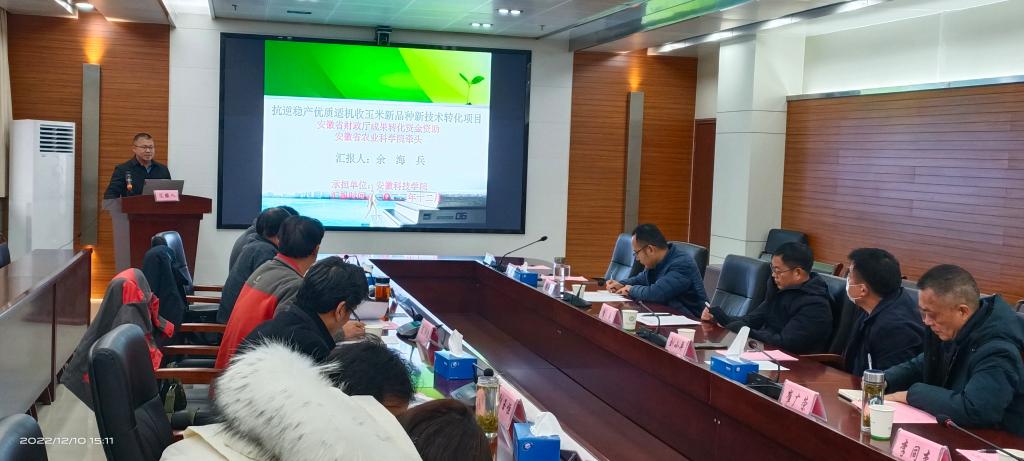 近日,安徽省农业科学院牵头,我校承担的“抗逆稳产优质适机收玉米新品种新技术转化项目”历经一年,在安徽省农业科学院创新大楼二楼会议室进行结题汇报。省财政厅农业农村处主任科员梁晓天,安徽省农业科学院科研处处长李成、计财处处长刘小平,星空官方网站_星空(中国)股份有限公司,农学院院长崔广荣、科研处副处长李同杰,部分项目组成员出席会议。项目验收专家组由安徽省农业科学院研究员陈洪俭、安徽省农技推广总站副站长康子领、安徽省种子管理站研究员刘玉恒、合肥丰乐种业股份有限公司正高级农艺师张二朋、众华会计师事务所商宜洲等成员组成。会议伊始李成致辞,专家组观看了课题组精心准备的视频,余海兵教授代表项目组从课题研究背景、研究目标、研究内容、研究方法、研究成果等方面做了全面细致的汇报。