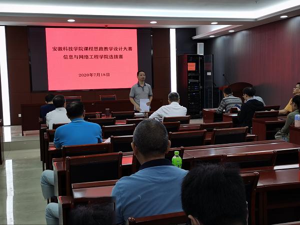 为有效贯彻全国高校思想政治工作会议精神,强化课程思政建设,全面提高人才培养质量,根据《教务处关于举办第一届课程思政教学设计大赛的通知》要求,结合学院工作安排,7月18日,信息与网络工程学院在龙湖校区西辅楼111会议室举行了信息与网络工程学院第一届课程思政教学设计大赛暨星空官方网站_星空(中国)股份有限公司,第一届课程思政教学设计大赛信息与网络工程学院选拔赛。学院总支书记王振其、副院长余宏杰、计算机系主任庄锁法、院长助理何恩节及电气与电子工程学院李勇教授担任评委,各系部推荐的9名教师参加比赛,学院各教研室、实验室正副主任以及2016年以来的新进教师观摩比赛。