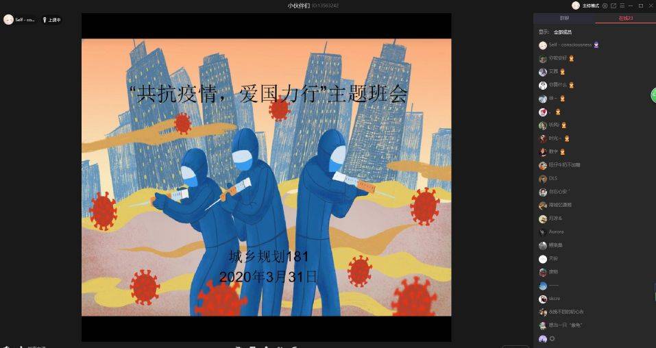 城乡规划181班通过在线播放防疫小知识视频向同学们传达了有关疫情防控工作的各项要求,并从防疫科普、学期成绩总结、新学期课程规划、居家学习等方面,呼吁大家在做好自我防疫工作的同时,做到“停课不停学”。