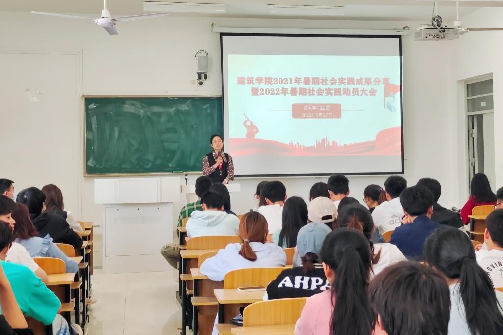 为深入学习贯彻习近平总书记在庆祝中国共青团成立100周年大会上的重要讲话精神,大力弘扬志愿服务精神,以实际行动践行社会主义核心价值观,在奉献中实现自我价值。近日,建筑学院在致知楼A208召开2021年暑期社会实践经验分享暨2022年暑期社会实践动员大会。学院团委副书记武辉,团学干部,班级班长、团支部书记以及有意愿组队的队长参加了此次会议。会议由建筑学院团委书记沈德艳主持。