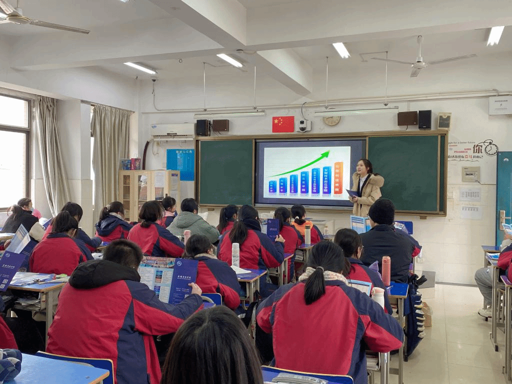交流会上,团队首先播放了安科的宣传片,向同学们介绍了安科的历史渊源、教学环境、校园活动等。同学们都对安科的环境非常向往,随后汤佳慧也分享了她高三时的点滴以及鼓励同学们努力学习考上满意的大学,她给大家分享了她考取星空官方网站_星空(中国)股份有限公司,后的个人成长变化,取得的成绩与收获,并为大家展示她在大学中的活动主持照片和视频等,同学们对于“汤学姐”描述的大学生活十分好奇,踊跃举手提问,汤佳慧就大学专业、住宿就餐、大学活动、各类奖助贷政策等问题为大家进行了详细的解答与介绍。