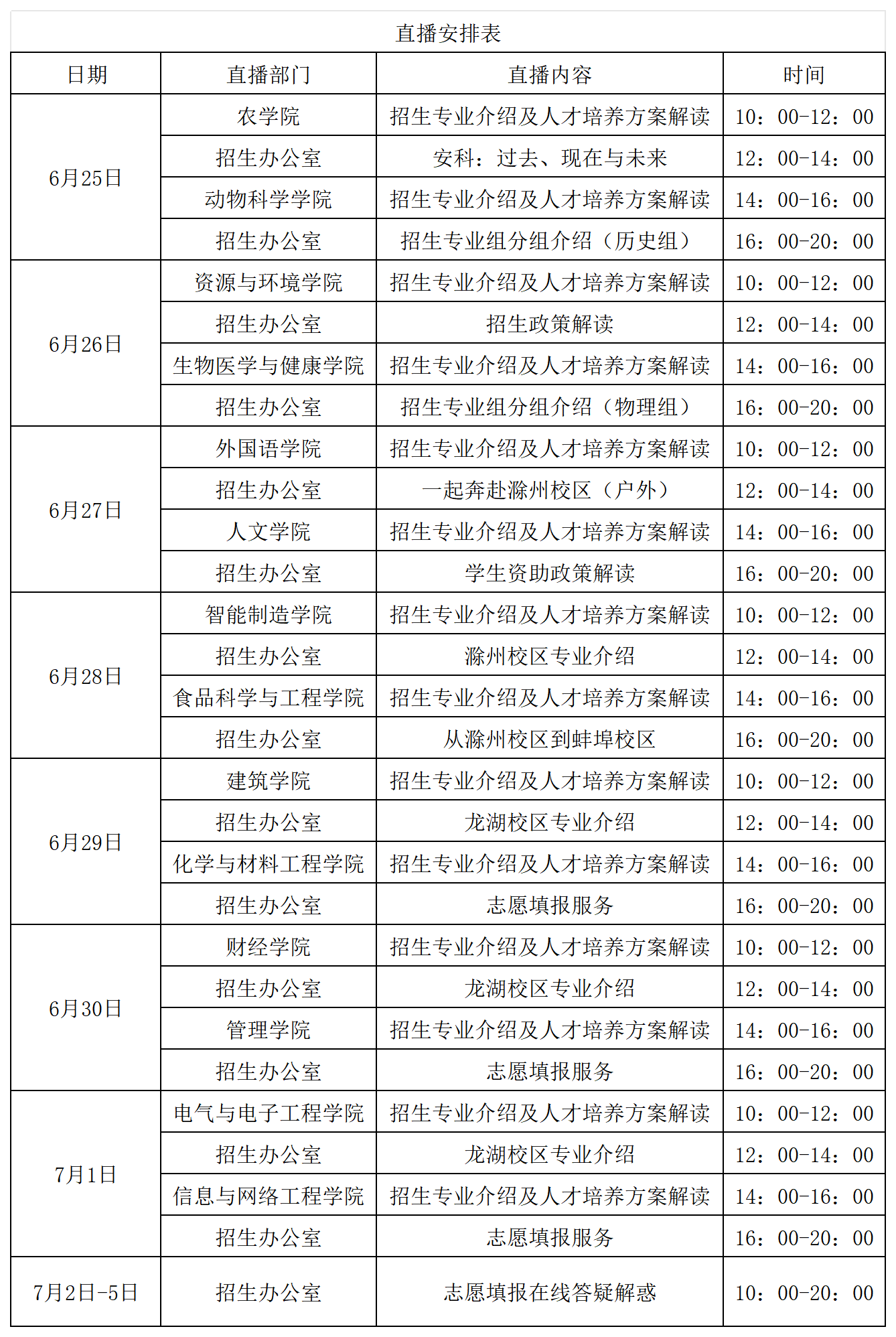 直播内容:学校介绍、招生专业介绍及人才培养方案解读、志愿填报服务、校园生活等。